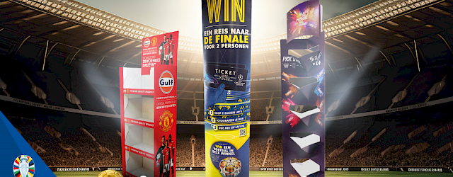 As the right-back of our team, we have the fearless 2 Second HANG-IN Display. With its sturdy cardboard construction, it stands firmly in its position, ready to support and protect any product. Like a reliable defender, it can quickly adapt to changing conditions on the store floor playing field, and with its flexibility in placement on any type of pallet, it can be deployed wherever needed.
