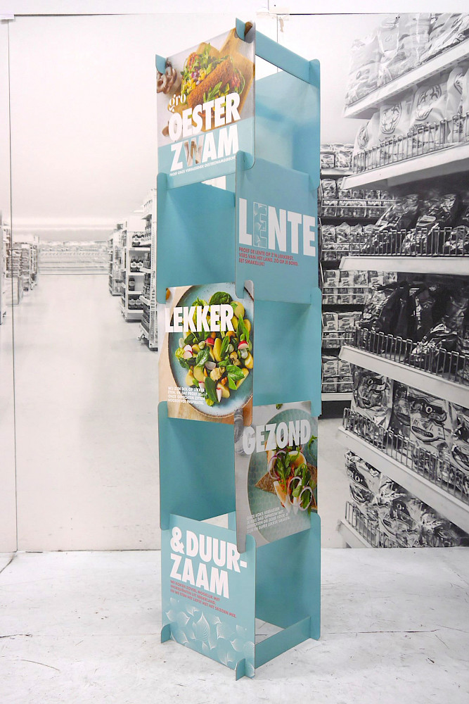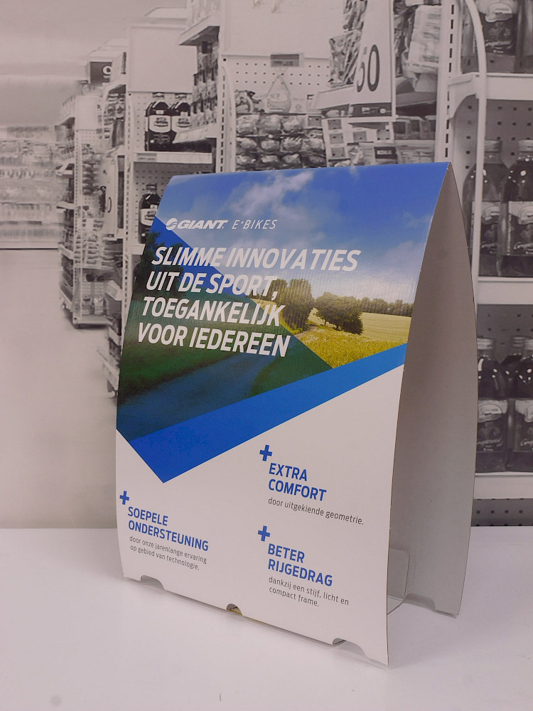 Point of sale, also called POS material brings your product to the attention of the customer at the point of sale. Because the decision process of the buyer takes place directly on the shop floor, it is important that these actions are clearly visible. With POS material you can think of cardboard cubes, shelf hangers, ceiling hangers, wobblers and showcards.
